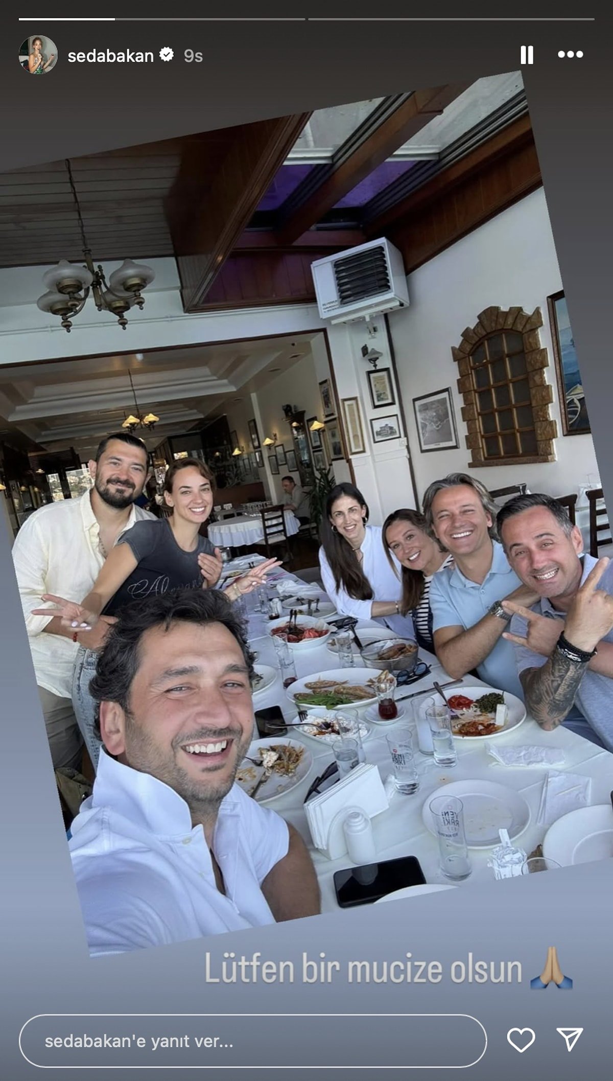 Seda Bakan, eşi Ali Erel, Halit Yukay ve diğer arkadaşlarıyla birlikte çekilmiş bir fotoğrafı paylaşarak, "Lütfen bir mucize gerçekleşsin" sözleriyle duygularını dile getirdi.