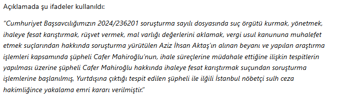İstanbul Cumhuriyet Başsavcılığı, Azı̇z İhsan Aktaş’ın etkin pişmanlık beyanına dayanarak Mart–Mayıs 2025 tarihli ifadeleri sonrası soruşturmayı genişletti.