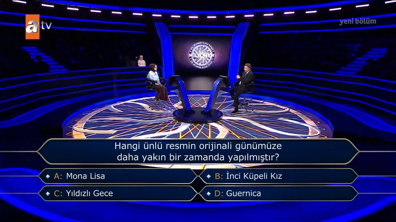 Kim Milyoner Olmak İster yarışmasının son bölümünde sanat tarihine ilgi duyan izleyicilerin dikkatini çeken bir soru yöneltildi. Yarışmacıya, dünyaca ünlü ressamların eserleri arasından, orijinali günümüze en yakın tarihte yapılmış olan tablonun hangisi olduğu soruldu.