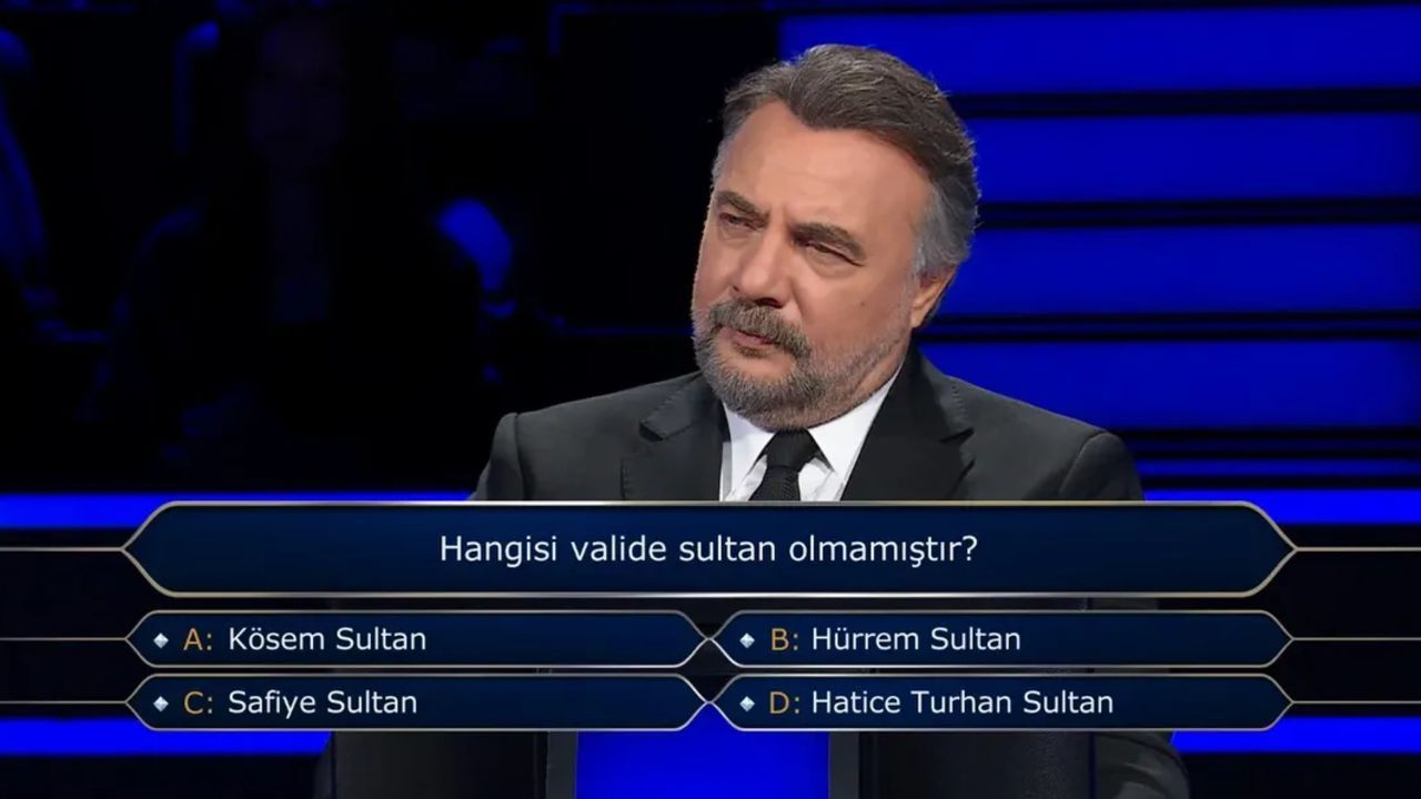 ATV’nin sevilen yarışma programı Kim Milyoner Olmak İster, 25 Eylül 2025 Perşembe akşamı yayınlanan 1178. bölüm ile gündeme damga vurdu. Oktay Kaynarca’nın sunuculuğunu yaptığı yarışmada bir yarışmacıya 300 bin TL’lik “Hangisi valide sultan olmamıştır?” sorusu yöneltildi. Şıklarda Kösem Sultan, Hürrem Sultan, Safiye Sultan ve Hatice Turhan Sultan yer aldı. Hem stüdyoda hem de ekran başında milyonlarca izleyici bu sorunun cevabını merak etti. Peki, Kim Milyoner Olmak İster 300 bin TL’lik soru hangisi valide sultan olmamıştır, doğru cevap nedir, Kösem Sultan, Hürrem Sultan, Safiye Sultan, Hatice Turhan Sultan kimdir? İşte detaylar…
