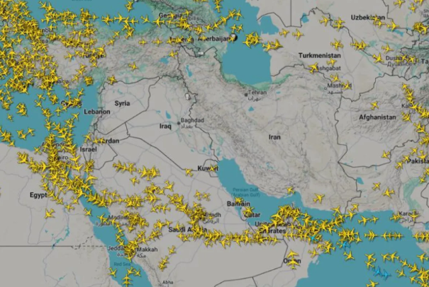 İran’ın ABD üslerine yönelik saldırıları sonrasında Orta Doğu hava sahasında oluşan yoğunluk ve rota değişiklikleri gündeme oturdu. Son gelişmelerin ardından bölgeye ait anlık hava trafiği haritası dikkat çeken bir tabloyu ortaya koydu. Birçok ülkenin hava sahasını güvenlik gerekçesiyle kapatması nedeniyle uçuşlar ağırlıklı olarak Suudi Arabistan üzerinden gerçekleştiriliyor.