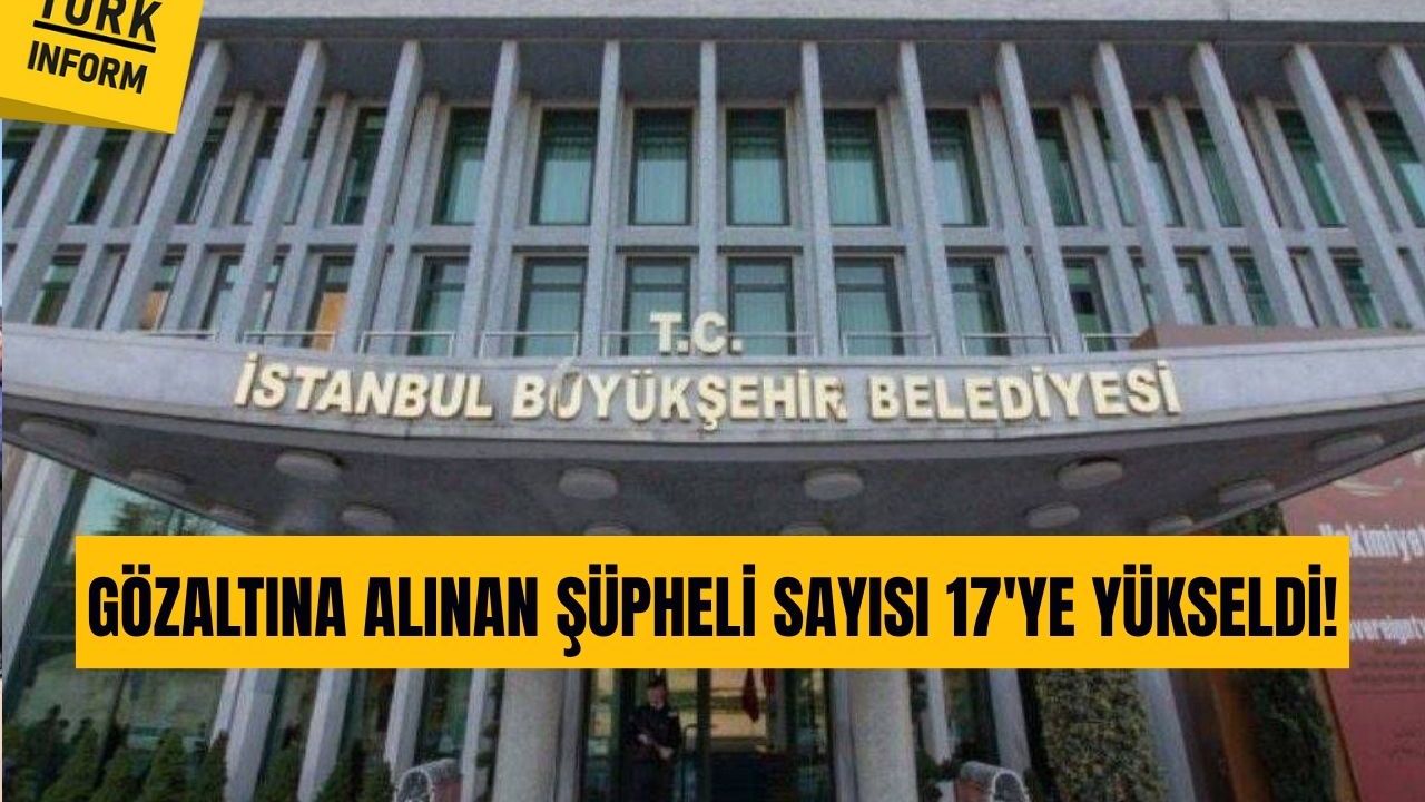 İstanbul Cumhuriyet Başsavcılığı tarafından yürütülen İstanbul Büyükşehir Belediyesine (İBB) yönelik yolsuzluk soruşturmasında yeni gelişmeler yaşanıyor. Daha önce gözaltına alınan 15 şüpheliye ek olarak 2 kişi daha yakalanarak gözaltı sayısı 17'ye ulaştı. Hakkında gözaltı kararı verilen 18 şüpheliden sadece 1 kişinin yakalanamadığı öğrenildi.