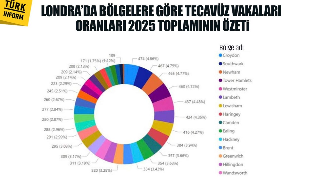 Bölge bazlı dağılımda en yüksek bildirimin Croydon’da (474) kaydedildiği belirtiliyor. Onu Southwark (467), Newham (465), Tower Hamlets (460) ve Westminster (437) izliyor. Bu beş bölge, toplam içinde en yüksek sayıları veren yerleşimler olarak öne çıkıyor.