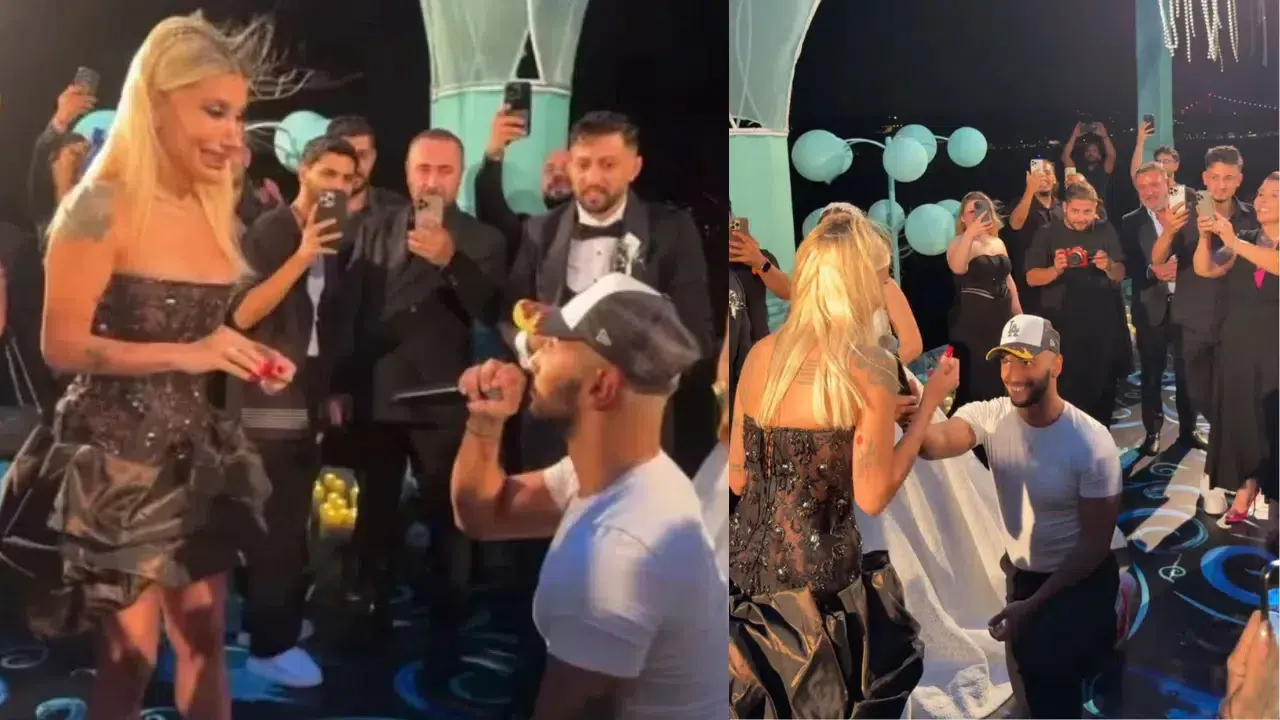 İrem Derici, yakın dostu Burak Bulut’un düğününde nikah şahidi olarak yer alırken, sahnede Alişan’ın performansı devam ediyordu. Tam da bu esnada, Derici hayatının belki de en unutulmaz anını yaşadı. DJ sevgilisi Melih Kunukcu, kalabalığın ortasında diz çökerek ünlü şarkıcıya sürpriz bir evlilik teklifinde bulundu.
