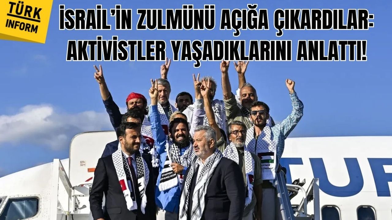 İsrail’in Gazze’ye yardım götüren Küresel Sumud Filosu’na müdahalesi sonucu alıkonulan Türk aktivistler Türkiye’ye döndü. Uluslararası sularda hukuksuz şekilde engellenen aktivistler yaşadıkları kötü muameleleri, psikolojik ve fiziki baskıyı gözler önüne serdi. Aktivistler Gazze ablukasını kırma çabalarının yanı sıra İsrail’in zulmünü ve barbar yüzünü tüm dünyaya gösterdiklerini vurguladı.