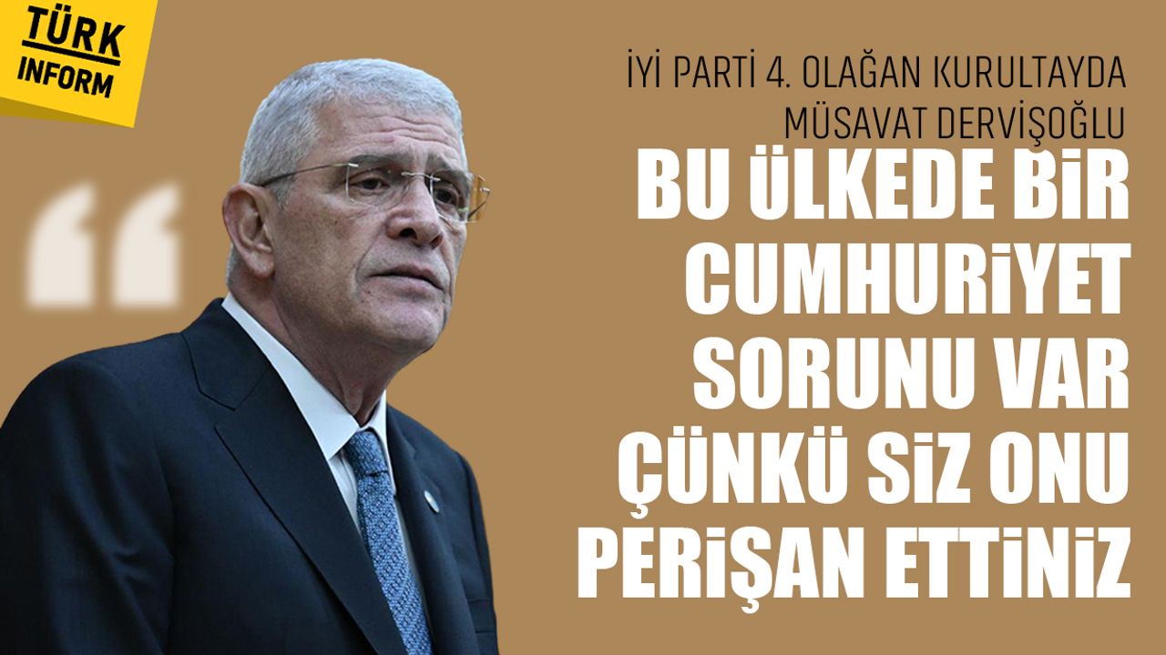 Anayasa'daki 'kritik' maddelerin tartışmaya açıldığını dile getiren Dervişoğlu, "Bu ülkede bir Cumhuriyet sorunu var, çünkü siz onu perişan ettiniz. Bu ülkede yurttaş eşitliği sorunu var, çünkü siz eşitlikten değil, ayrımcılıktan beslenmektesiniz. Bu ülkede hukuk sorunu var, çünkü siz millî iradeyi gasp edip sarayınıza hapsettiniz." dedi. Ve konuşmasına şu sözlerle devam etti:
