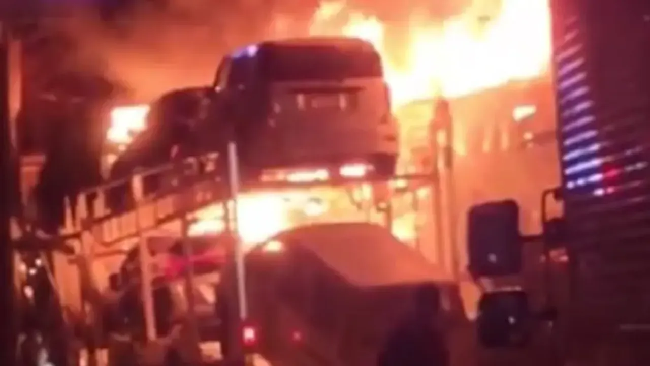 20 ARAÇTA YANGIN ÇIKTI, OTOYOL TRAFİĞE KAPATILDI