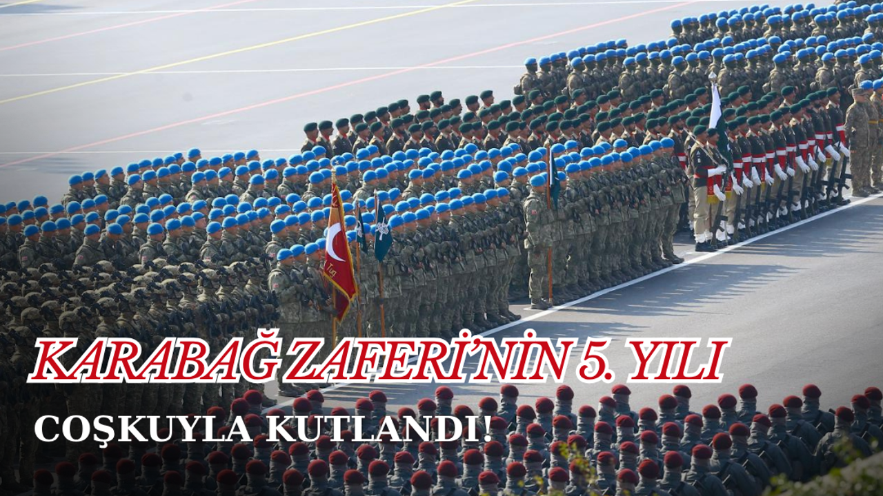 Azerbaycan ordusunun 2. Karabağ Savaşı'nda kazandığı önemli zaferin 5. yıldönümü, Bakü'deki Azadlık Meydanı'nda düzenlenen görkemli bir askeri geçit töreniyle kutlandı. Törene Azerbaycan Cumhurbaşkanı İlham Aliyev'in yanı sıra Türkiye Cumhurbaşkanı Recep Tayyip Erdoğan ve Pakistan Başbakanı Şahbaz Şerif de katılarak birlik mesajı verdiler. Üç lider, töreni protokol alanından birlikte takip etti.