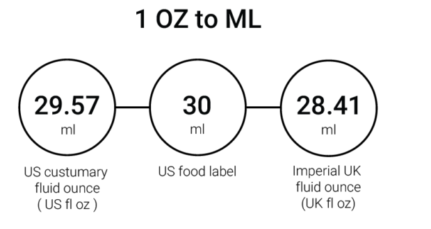 - 1 oz = 29 ml