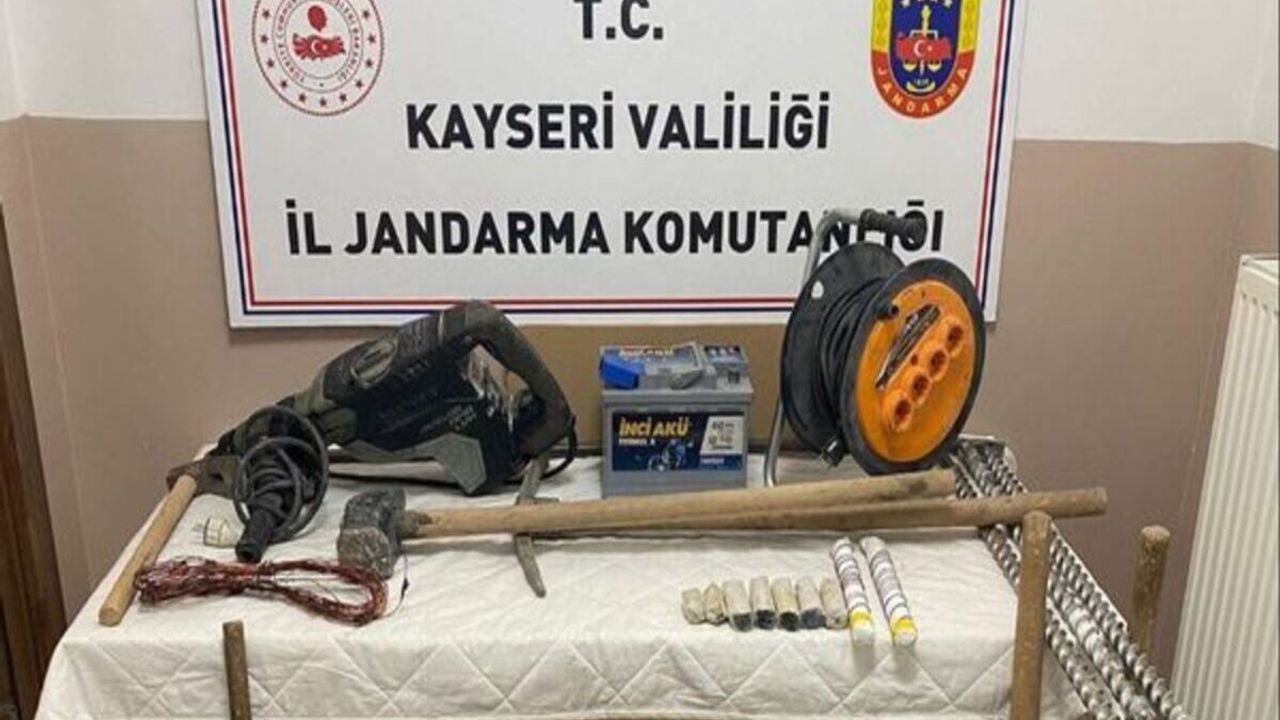 Şüpheliler, kazı sırasında kullandıkları 2 tarama çubuğu, 1 kazma, 2 kürek, 2 metal boru, 6 bidon, 4 çift eldiven ve 21 farklı malzeme ile suçüstü yakalandı.