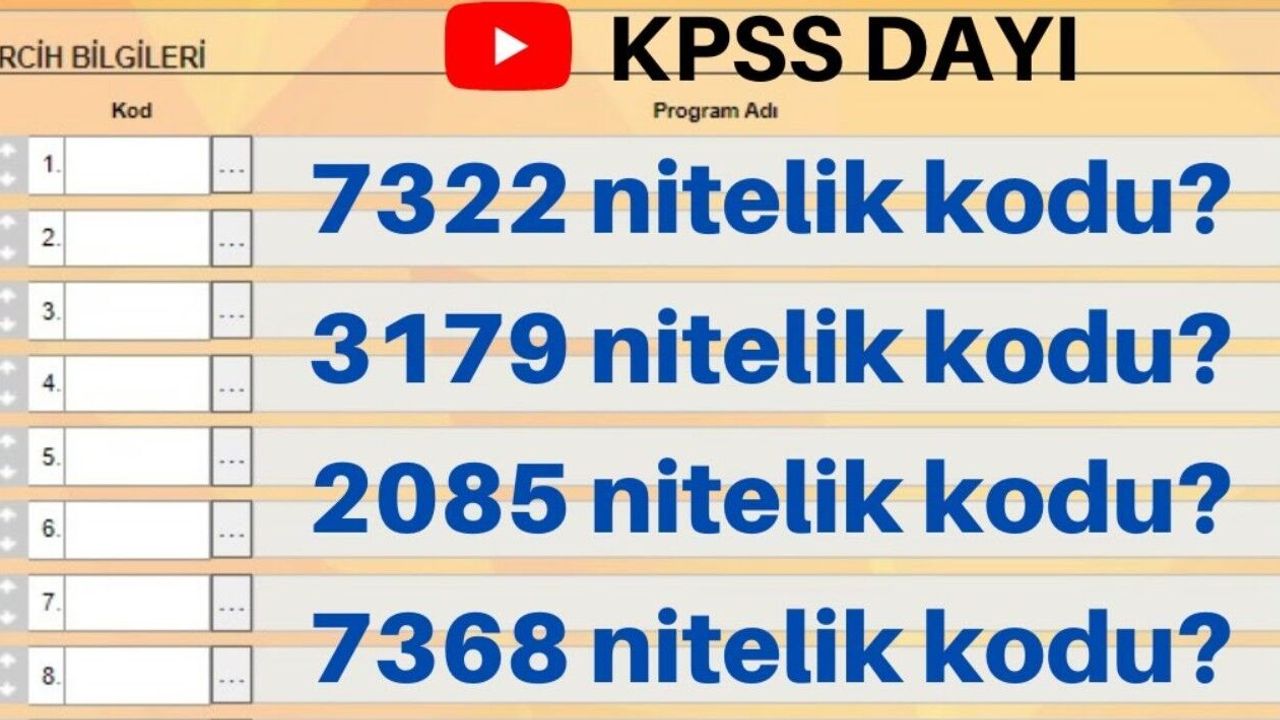 KPSS nitelik kodları, kamu personeli alımlarında hangi eğitim seviyesi ve hangi bölümden mezun adayların başvurabileceğini gösteren sayısal kodlardır. Her kod, belirli bir eğitim alanını ve seviyesini temsil eder.
