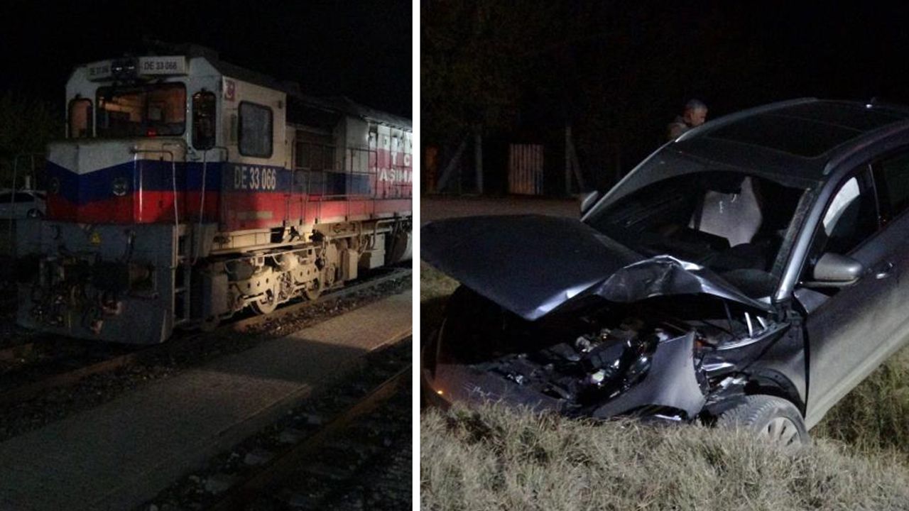 YÜK TRENİ İSTASYON CADDESİ ÜZERİNDEKİ GEÇİTTE ARACA ÇARPTI
