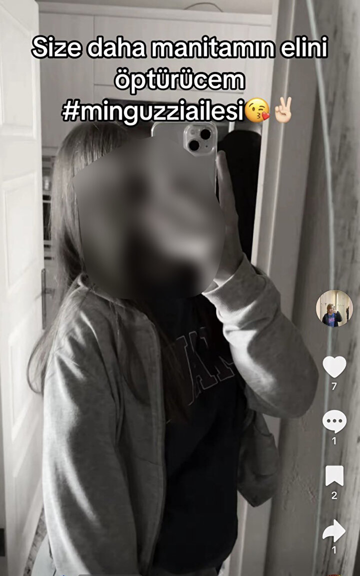 Tiktok hesabı üzerinden bir paylaşım yapan Sahra, “Size daha manitamın elini öptüreceğim Minguzzi ailesi” ifadelerini kullanarak hem ailenin acısını küçümsedi hem de adalet süreciyle dalga geçtiği yönünde tepkilere yol açtı. Bu skandal açıklama, binlerce kullanıcı tarafından paylaşılırken, kamuoyunda büyük bir öfke patlamasına neden oldu.