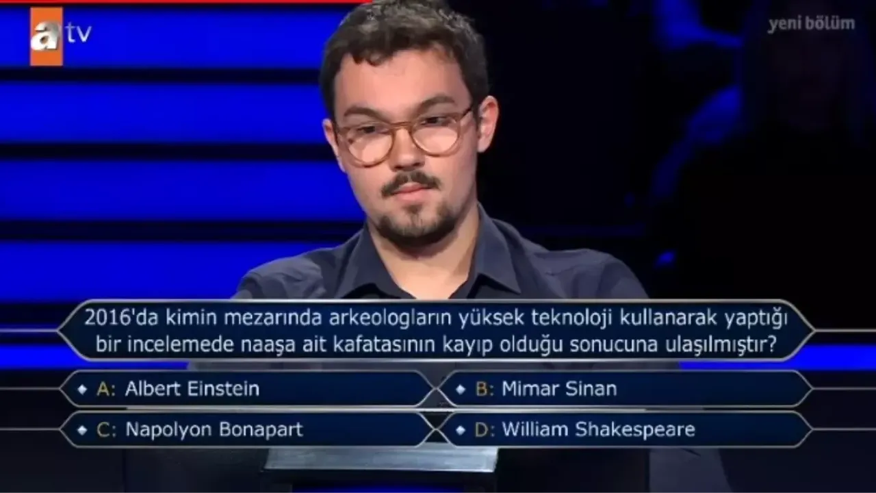 ATV ekranlarının fenomen yarışması Kim Milyoner Olmak İster, her bölümüyle izleyicileri hem bilgiye hem de heyecana ortak ediyor. Yarışmanın son bölümünde sorulan sorular arasında, Türk tarihinin en önemli mimarlarından birinin mezarına ilişkin ilginç bir bilgi yer aldı. “2016’da kimin mezarında arkeologların yüksek teknoloji kullanarak yaptığı bir incelemede naaşa ait kafatasının kayıp olduğu sonucuna ulaşılmıştır?” sorusu sosyal medyada da gündem oldu. Haberin Burada’nın haberine göre bu sorunun doğru cevabı Mimar Sinan oldu.