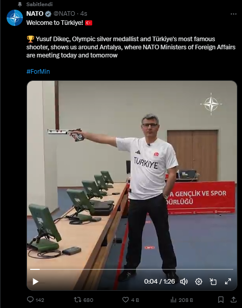 Videoda, dünya çapında tanınan bir isim yer alıyordu: Yusuf Dikeç, ikonik atış hareketiyle NATO'nun paylaşımında da karşımıza çıktı.