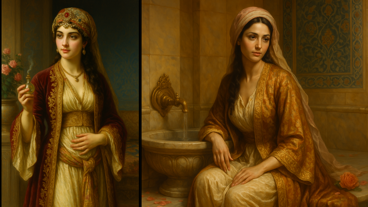 Osmanlı saray kadınları ağır parfümlerden kaçınır, hafif ve doğal kokuları tercih ederdi. Gül, lavanta ve amber gibi esanslarla yapılan kokular zarafet ve sadeliğin simgesi kabul edilirdi.