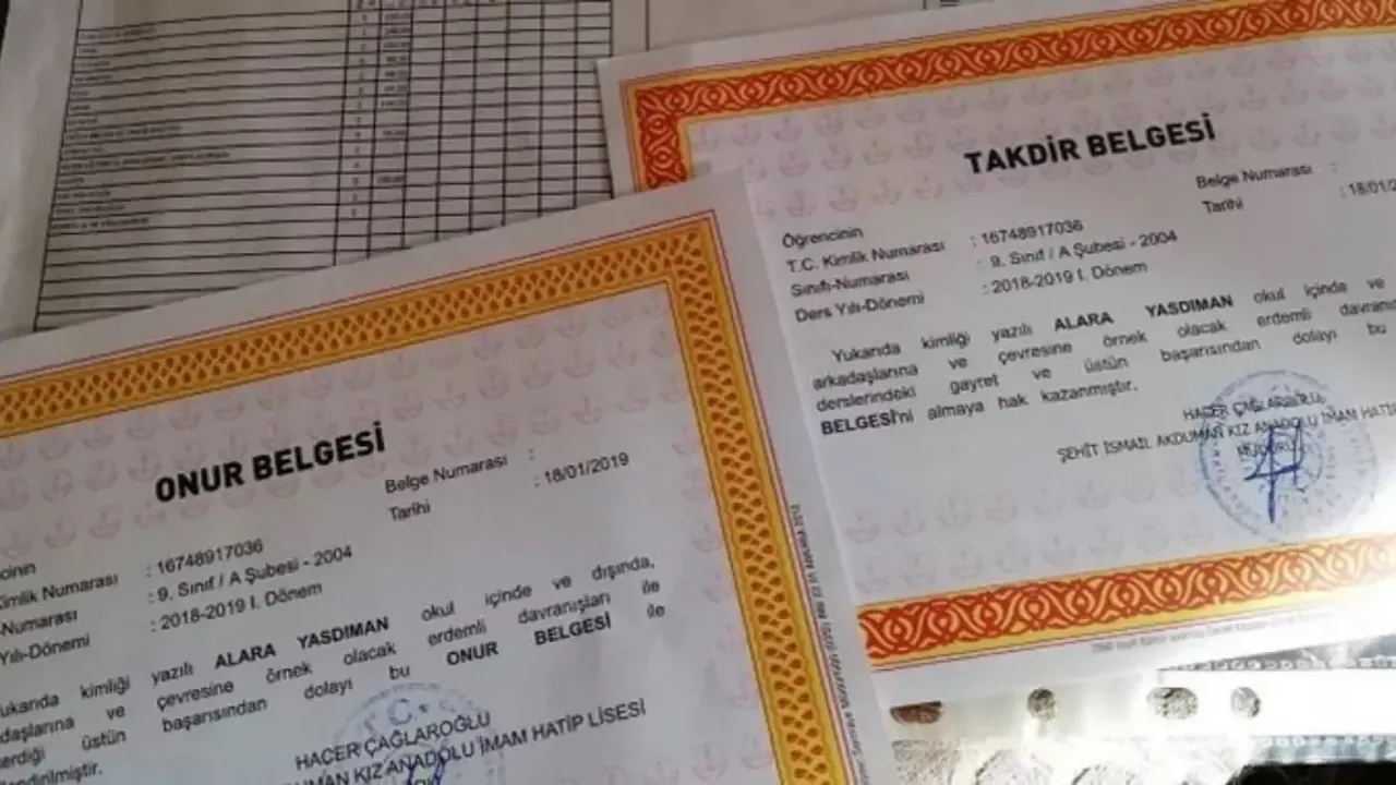 Onur belgeleri çeşitleniyor: Akademik onur belgesi, disiplin onur belgesi veya kurum özel ödülleri bulunuyor. Lise bitirme onur belgesi, YKS'de tercihlerde avantaj sağlıyor. İş hayatında ise özgeçmişe eklenerek terfi kapılarını aralıyor.