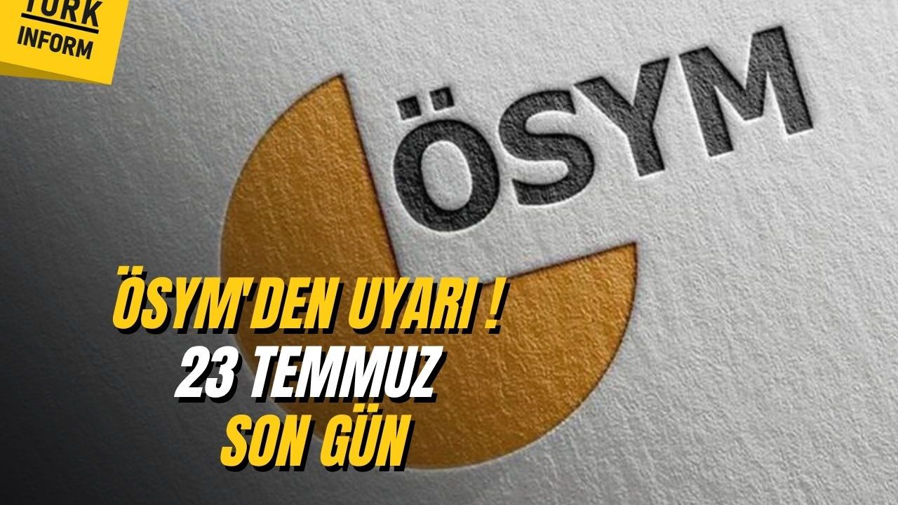 ÖSYM yaptığı açıklamada okul birincisi olan öğrencileri uyardı. Okul birinciliği bulunan öğrencilerin 23 Temmuz tarihine kadar ÖSYM'nin sitesinden kontrol sağlamaları gerekiyor.