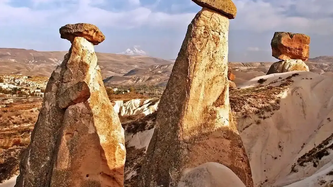 Volkanik birikimin ardından devreye erozyon giriyor. Binlerce yıl boyunca rüzgar, yağmur ve kar erimeleri, yumuşak tüf tabakalarını aşındırarak kayaçları oydu. Bu süreçte, seçici erozyon ön plana çıkıyor: Sert bazalt şapkaları, altındaki yumuşak tüfü korur ve mantar benzeri yapılar oluşuyor.