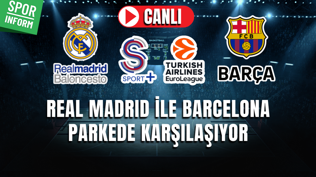 EuroLeague Normal Sezon 2025/2026 kapsamında oynanacak Real Madrid – Barcelona karşılaşması saat 22.45’te başlayacak ve S Sport Plus ekranlarından canlı olarak yayınlanacak.