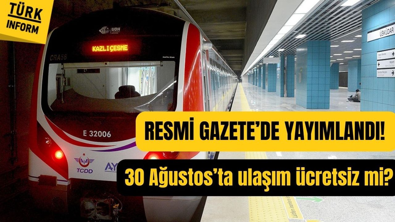 Resmi Gazete’de yayımlanan Cumhurbaşkanı Kararı’na göre, 30 Ağustos Cumartesi günü aşağıdaki hatlarda ücretsiz yolculuk yapılabilecek: