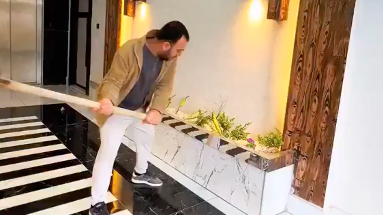 Balyoz darbeleri sonucu duvarlardaki dekorasyon malzemelerinin parçalanarak yere döküldüğü görüldü. Cep telefonu kamerasıyla kaydedilen o anlar, sosyal medya platformlarında paylaşılmasının ardından kısa sürede yayıldı ve çok sayıda etkileşim aldı.