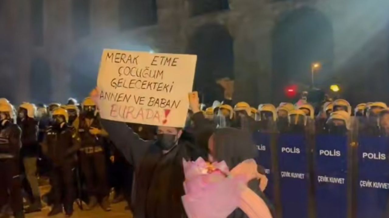 İstanbul Saraçhane’de demokrasi nöbeti sırasında beklenmedik bir an yaşandı. Polis barikatlarının önünde bir genç, sevgilisine evlilik teklif etti. O anları çevrede bulunanlar şaşkınlıkla izlerken, gencin sözleri büyük alkış aldı: