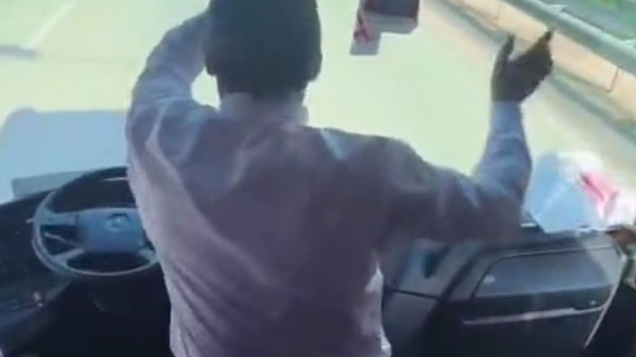 ŞOFÖR YERİNDEN KALKIP OYNAMAYA BAŞLADI
