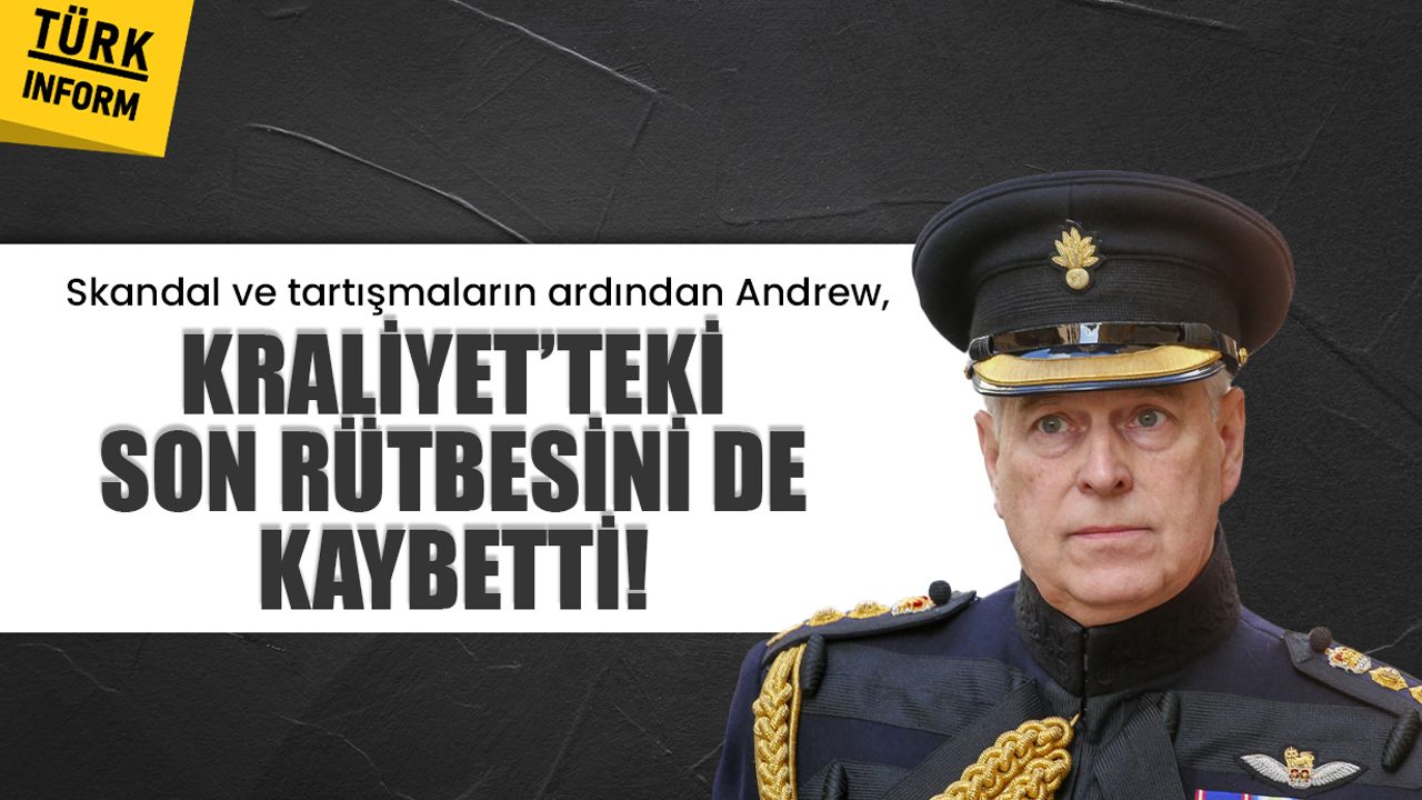 İngiltere Kralı Charles’ın kardeşi Andrew Mountbatten-Windsor, pedofili ve cinsel istismar iddialarıyla gündeme gelmesinin ardından, tüm kraliyet ünvanlarından ve askeri rütbelerinden vazgeçmişti. Şimdi ise elinde kalan son rütbesi “Fahri Koramiralliği” de resmen iade etmesi bekleniyor. İngiltere Savunma Bakanı John Healey, söz konusu rütbenin geri alınması işleminin Kral Charles gözetiminde yürütüldüğünü duyurdu.