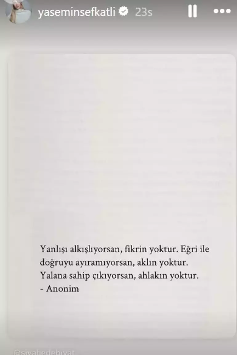 Şefkatli’nin bu mesajı kime yönelik olduğu netleşmese de birçok takipçi bu paylaşımın Dilan Çıtak’a gönderme olduğunu öne sürdü.