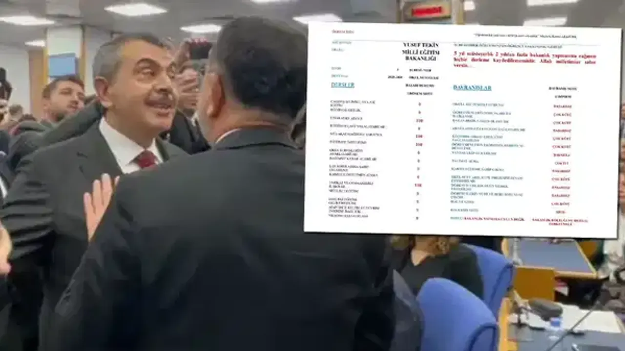 Komisyona katılan milletvekilleriyle tek tek tokalaşan Milli Eğitim Bakanı Yusuf Tekin’e CHP Malatya Milletvekili Veli Ağbaba, “Notlarınız, karneniz hazır.” diyerek hazırladıkları karneyi gösterdi. Ağbaba’nın bu çıkışı üzerine Bakan Tekin, “Bu karneden dolayı sana sıfır veriyorum. Söylediğin şeylerin yüzde 99’u yalan yanlış.” ifadelerini kullandı. Sözlü tartışmanın ardından komisyon çalışmalarına devam etti.