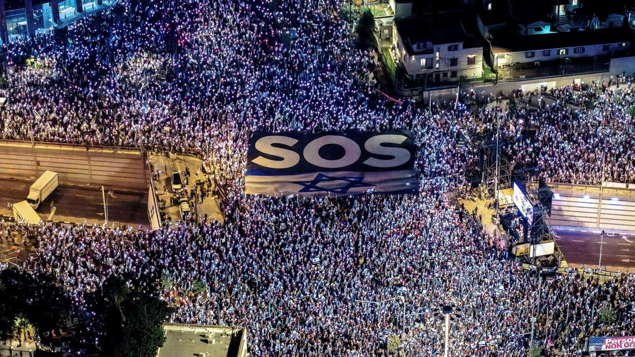 Tel Aviv’in merkezi Rehineler Meydanı cumartesi günü yoğun bir protestoya sahne oldu. Göstericiler Gazze’deki işgalin son bulmasını ve bölgede tutulan İsrailli esirlerin bir an önce serbest bırakılmasını talep etti. Drone görüntüleri, meydanı ve çevresindeki sokakları dolduran kalabalığın pankartlar taşıdığını ve İsrail hükümetine çağrı yaptığını gözler önüne serdi.