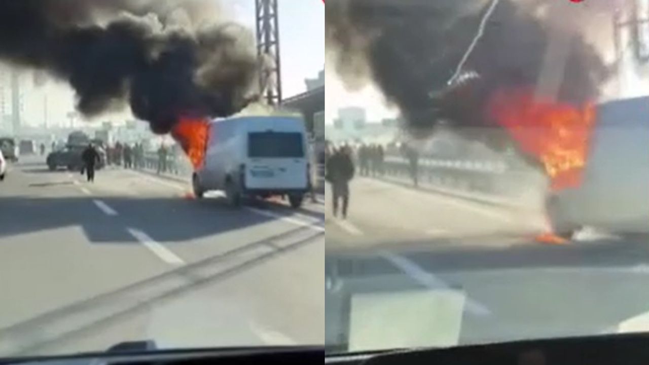 Bağcılar TEM Otoyolu İSTOÇ mevkiinde ilerleyen bir araç, henüz belirlenemeyen bir nedenle aniden yanmaya başladı. Alevlerin kısa sürede tüm aracı sarması paniğe neden oldu.