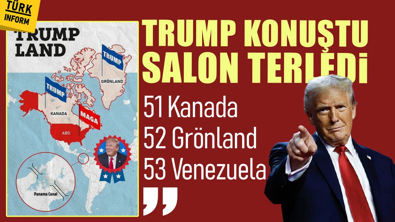 ABD Başkanı, Kanada ve Venezuela'yla ilgili de ilginç değerlendirmelerde bulunarak, "Hiçbir zaman Grönland'ı 51. eyalet yapmak istemedim. Kanada'yı 51. eyalet yapmak istiyorum. Grönland, 52. eyalet olacak, Venezuela da 53. olabilir" ifadelerini kullandı.