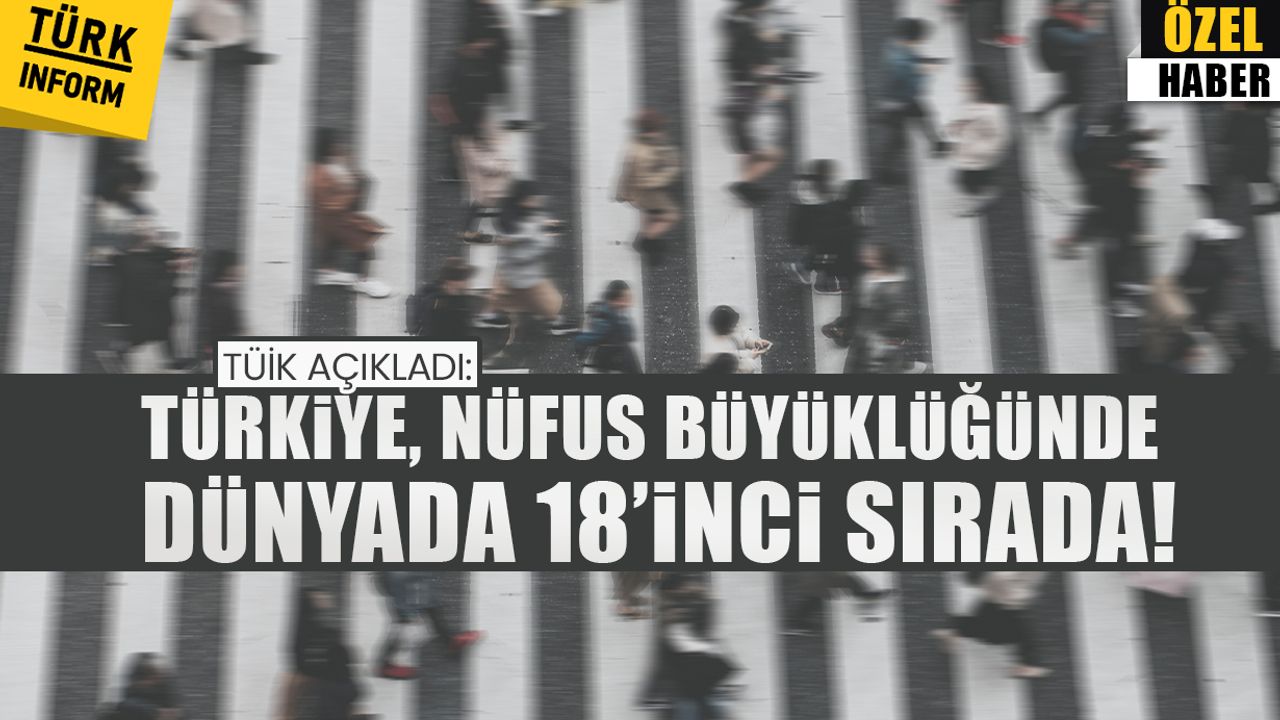 Birleşmiş Milletler Kalkınma Programı (UNDP) ve TÜİK verilerine göre Türkiye, 2024 itibarıyla 85 milyon 664 bin 944 kişilik nüfusuyla 194 ülke arasında 18’inci sırada yer aldı.