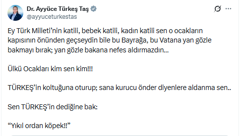 Ayyüce Türkeş Taş, sosyal medya hesabı üzerinden yaptığı açıklamada şu ifadelere yer verdi: