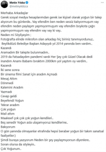 Metin Yıldız, sosyal medya hesabından yaptığı açıklamada, Ekrem İmamoğlu’na neden destek vermediği sorularına dikkat çeken bir yanıt verdi. Yıldız, zamanında İmamoğlu’na büyük destek verdiğini ancak kendisi ihtiyaç duyduğunda İmamoğlu’nun "çok yoğun" olduğunu söyledi. Yıldız, şimdi de aynı gerekçeyle sessiz kaldığını belirtti.