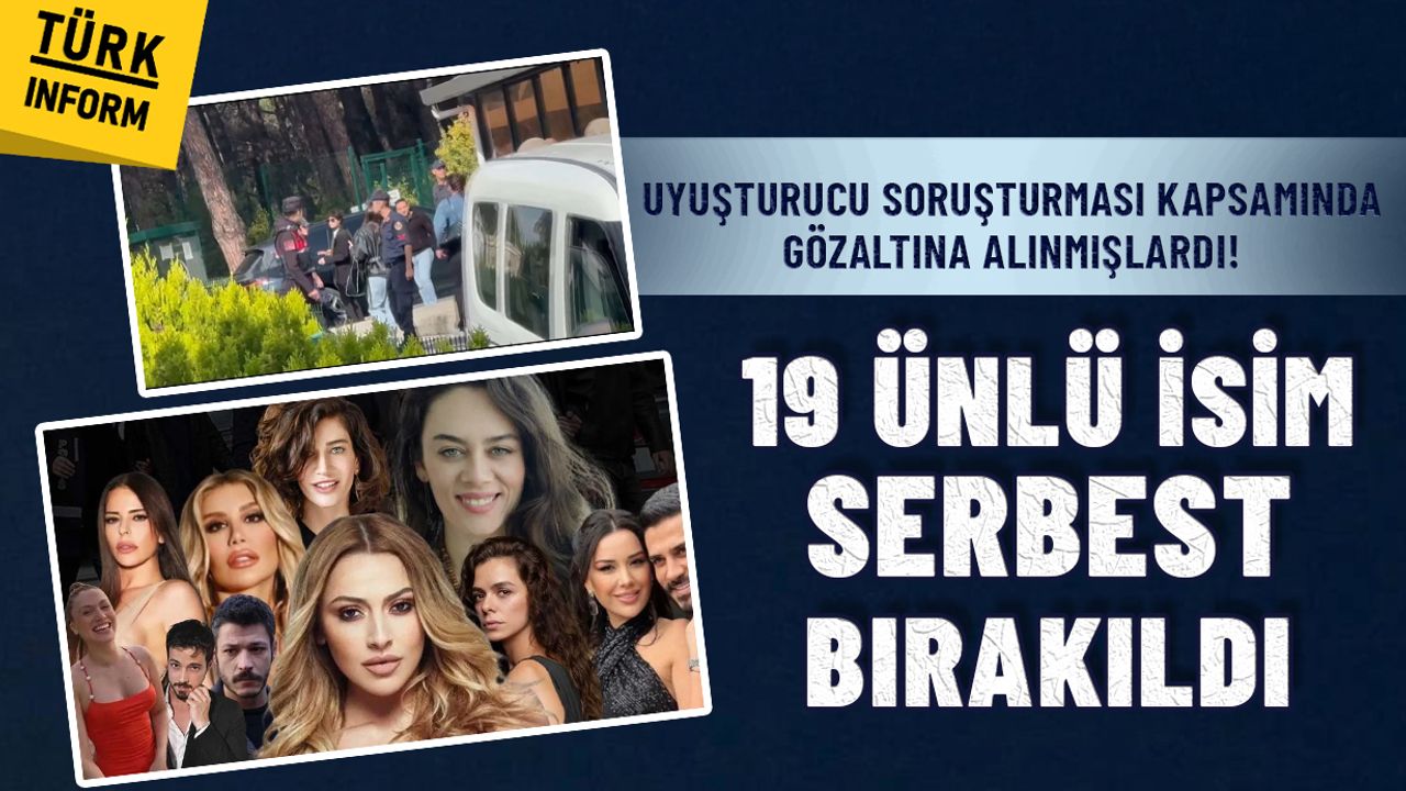 İstanbul’da yürütülen uyuşturucu soruşturması kapsamında ifadeleri alınan ve kan örnekleri alınmak üzere Adli Tıp Kurumu’na götürülen 12 ünlü isim, işlemlerinin ardından serbest bırakıldı.