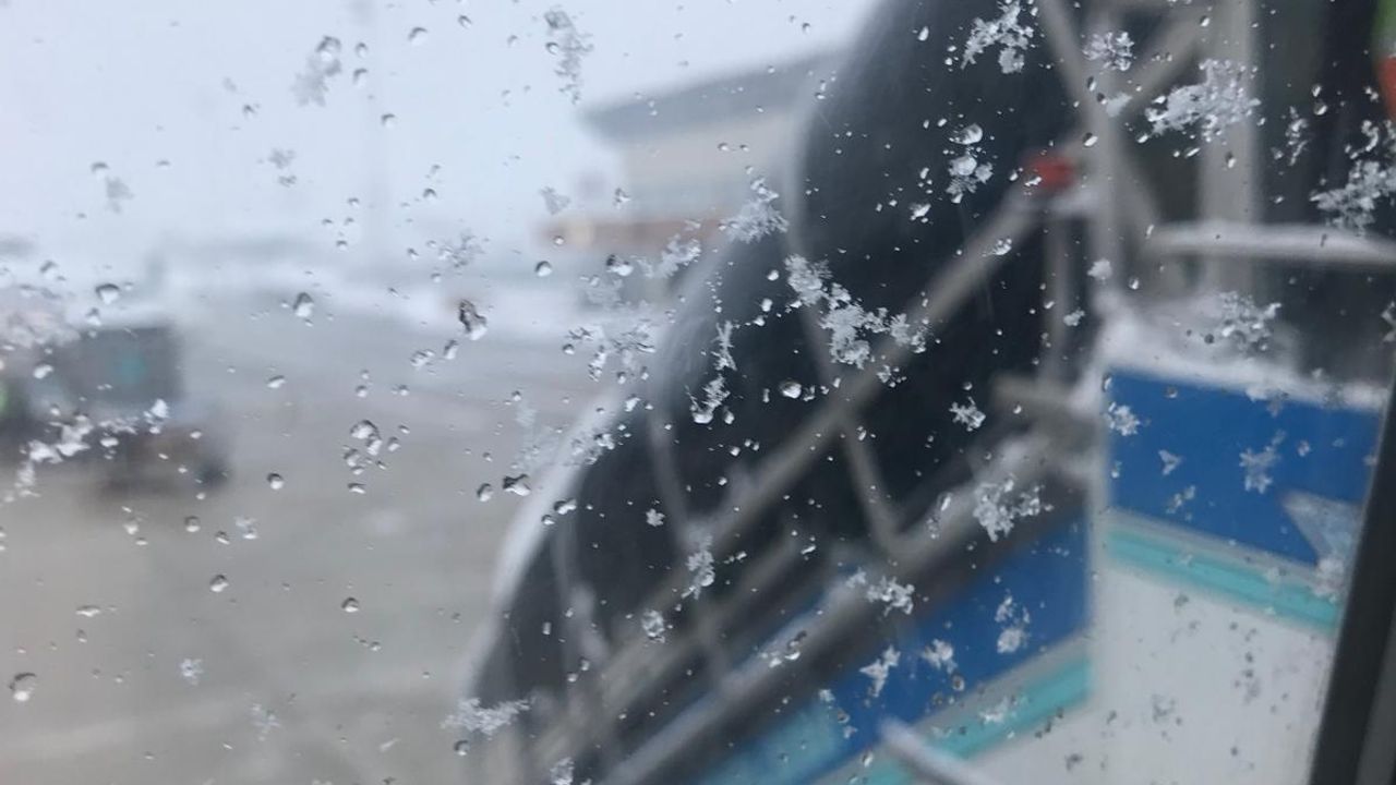 Uçağa kalkış öncesi alkol bazlı buz çözücü işlemi uygulanırken, hava şartlarının uygun hale gelmesi için güvenlik gerekçesiyle pistte bekleme kararı alındı. Uçak 3 saatin ardından geldi.