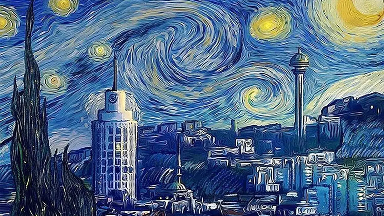 Ankara’nın simgesel yapıları, Van Gogh’un “Yıldızlı Gece” tablosunu çağrıştıran bir üslupla yapay zekâ kullanılarak dijital sanat çalışmasına dönüştürüldü.