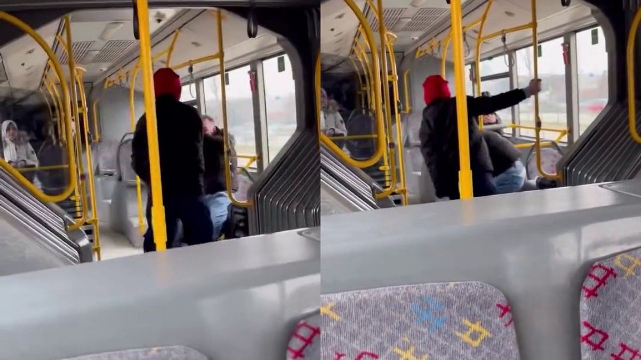 Belediye otobüsü boks ringine döndü: Yolcuyu böyle darbetti