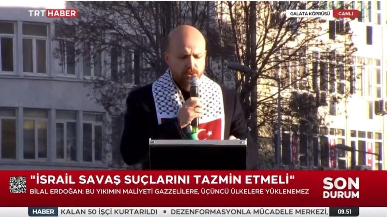 İstanbul’da düzenlenen “Sinmiyoruz, susmuyoruz, Filistin’i unutmuyoruz” mitinginde konuşan TÜGVA Yüksek İstişare Kurulu Üyesi Bilal Erdoğan, Türkiye’nin Gazze konusunda izlediği politikaya ilişkin açıklamalarda bulundu.