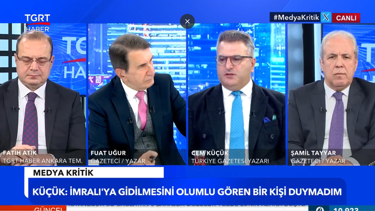 AK Parti’ye yakın isimlerden Cem Küçük, TGRT’de katıldığı canlı yayında İmralı’ya yapılacağı iddia edilen ziyaretle ilgili açıklamalarda bulundu. Küçük, söz konusu adımın toplumda karşılık bulmadığını belirterek tartışmaların neden gündemde olduğuna...