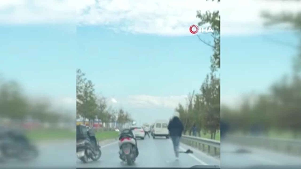 Esenyurt'ta dün trafikte 'yol verme' nedeniyle önce tartışma çıktı, tartışma daha sonra kavgaya dönüştü. O anlar diğer sürücülerin kamerasına yansıdı.