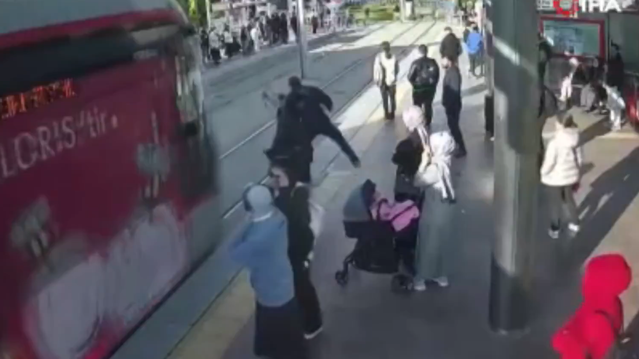 Kayseri’de kulaklık taktığı için çevresini fark edemeyen genç kızı, tramvayın geldiğini son anda fark eden güvenlik görevlisi rayların üzerinden çekerek olası bir faciayı önledi. O anlar güvenlik kamerasına yansıdı.