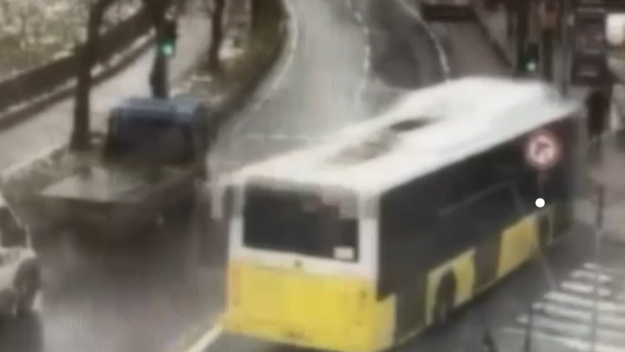 Esenler’de kontrolden çıkan 89C hatlı İETT otobüsü yol kenarındaki otoparka girdi. Güvenlik kamerasına yansıyan kazada bir kişi saniyelerle kurtuldu.
