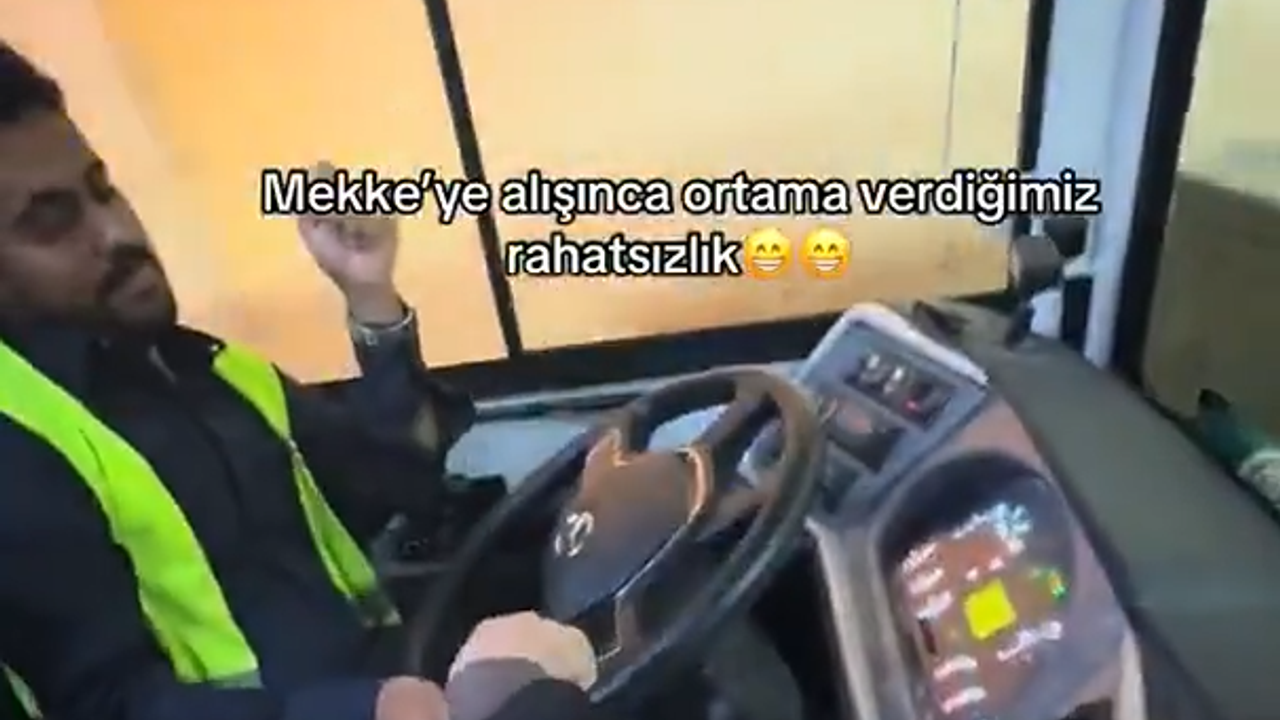Mekke'de otobüste şoförün yanına gidip kornaya bastılar! Paylaşılan not dikkat çekti: 'Ortama verdiğimiz rahatsızlık'