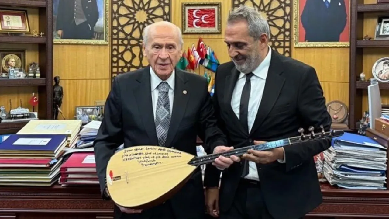 Türk Halk Müziği sanatçısı Yavuz Bingöl, Milliyetçi Hareket Partisi (MHP) Genel Başkanı Devlet Bahçeli’yi makamında ziyaret etti. Ziyarette Bingöl, Bahçeli’ye kendi bağlamasını hediye etti.