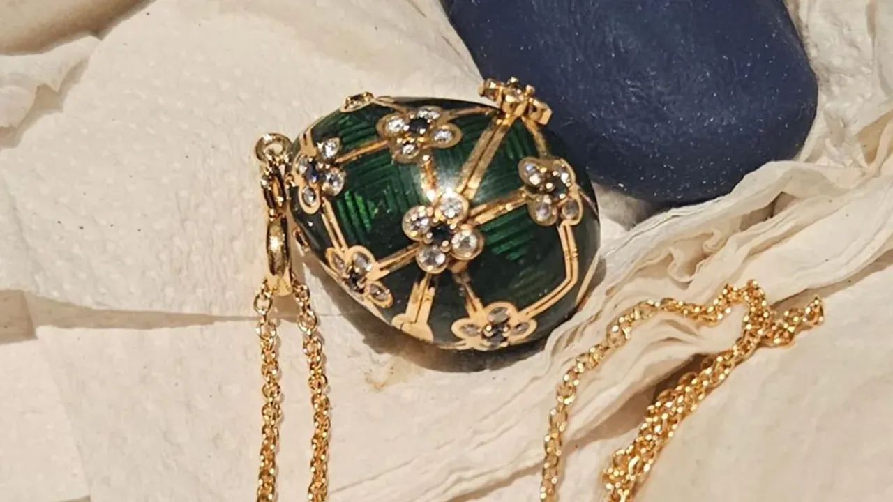 Olay, Auckland kent merkezindeki Partridge Jewellers mağazasında meydana geldi. Şüpheli, 60 beyaz pırlanta ve 15 mavi safirle süslenen, açıldığında 18 ayar altından minyatür bir ahtapot ortaya çıkan Faberge tasarımı yumurta kolyeyi yutarak çaldı. Kısa süre sonra gözaltına alınan hırsızın midesindeki kolye, günler sonra doğal yollarla elde edildi.