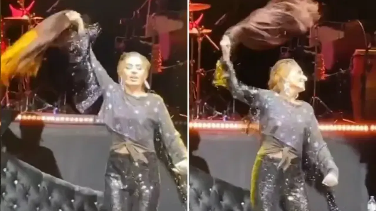 Peruğunu çıkardı, halay mendili gibi salladı!